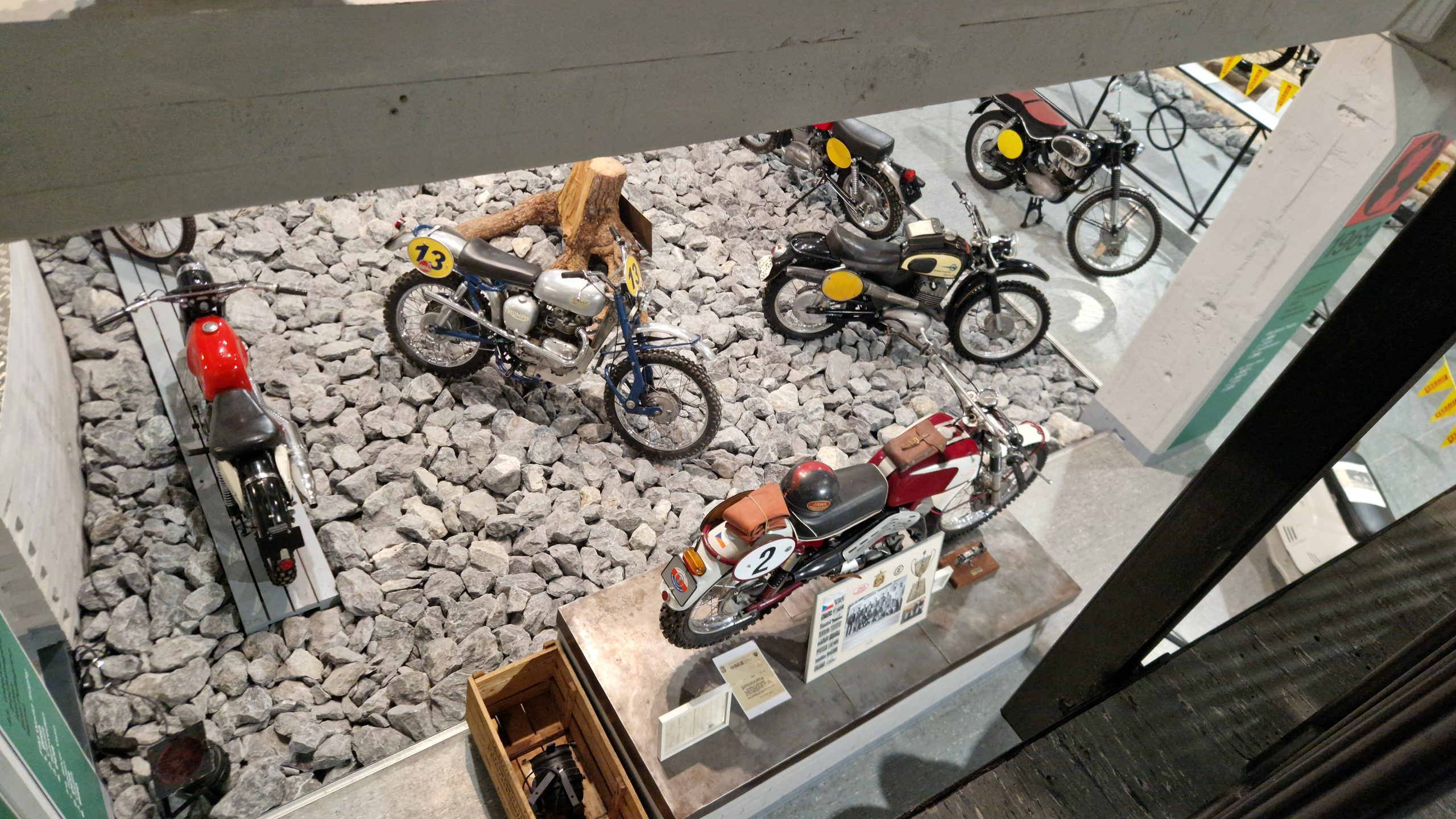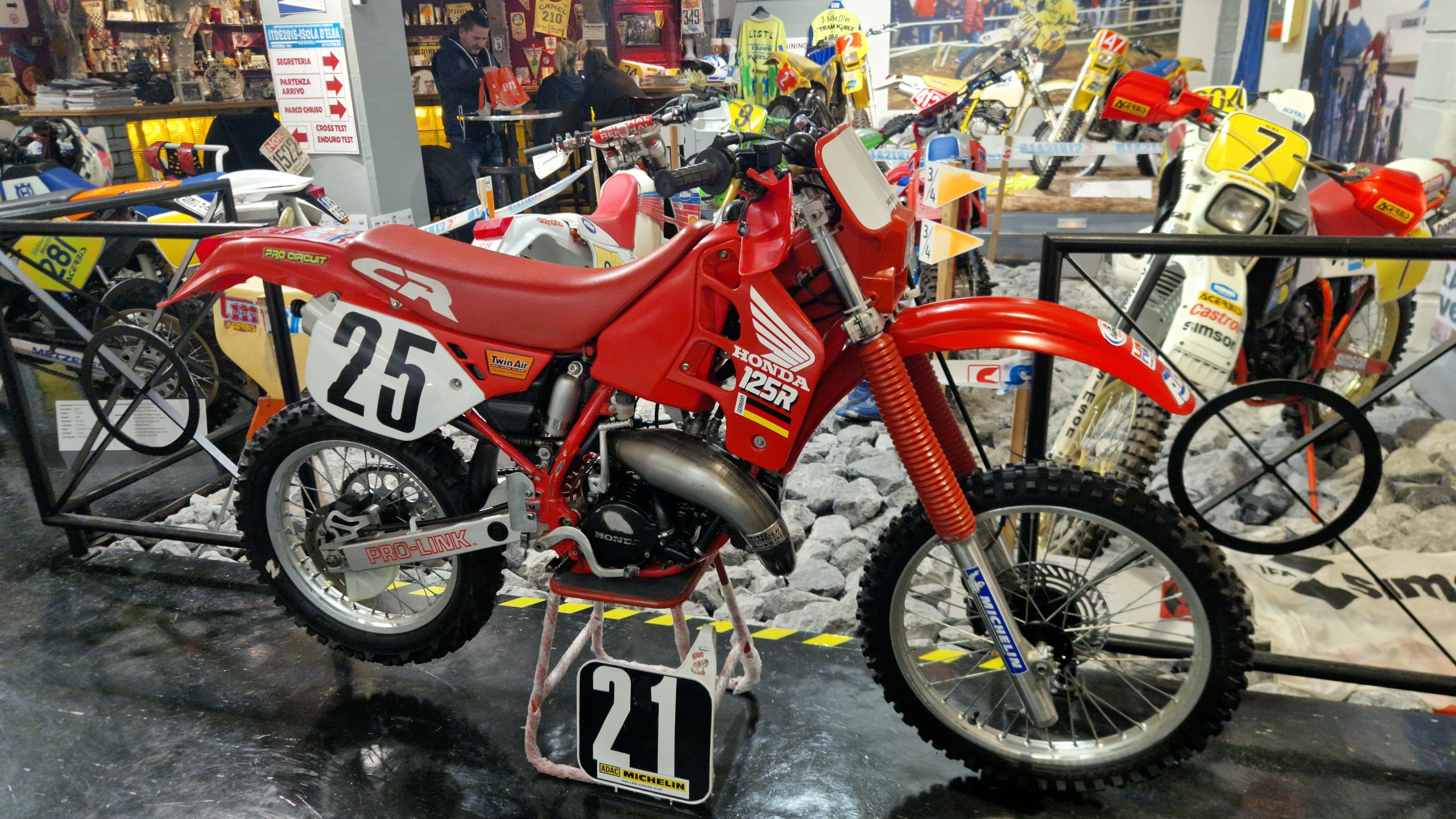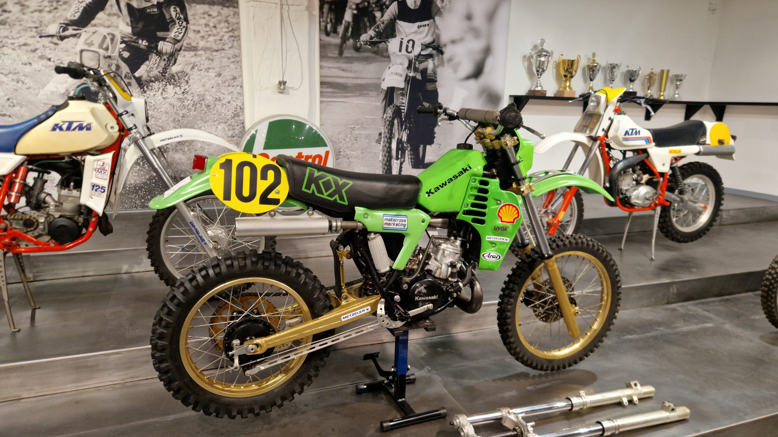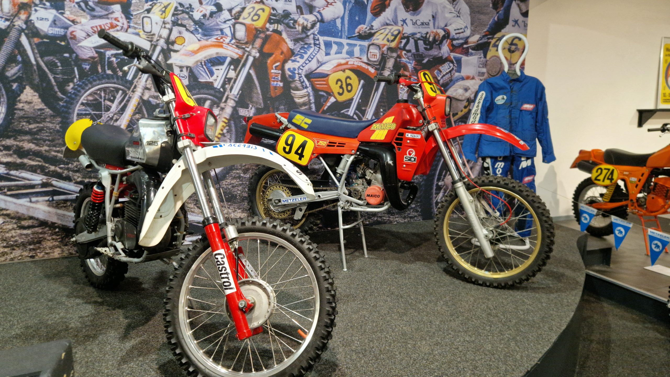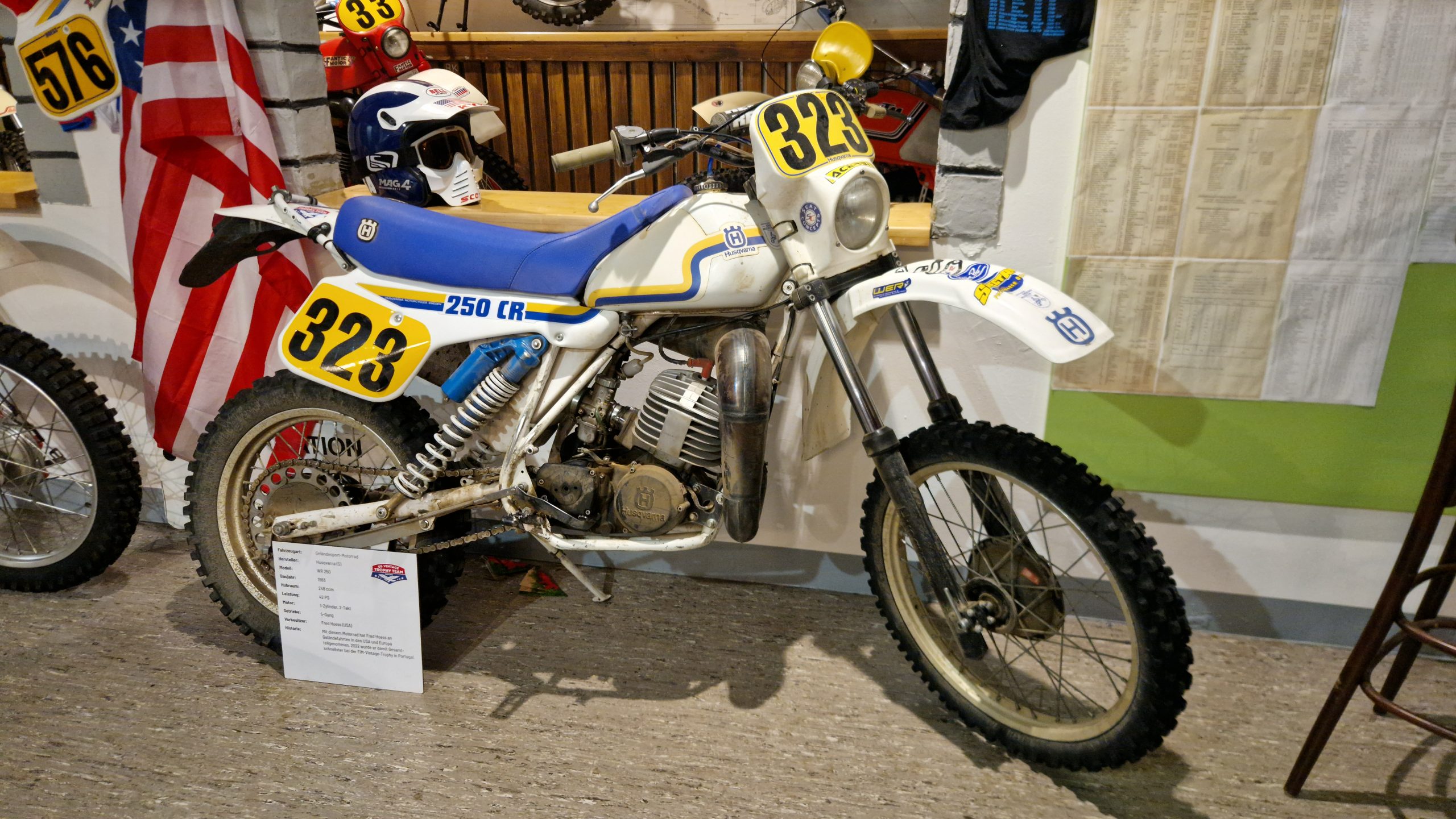 Dazu gibt es eine Menge Hintergrundinformationen und zu den jeweiligen Bikes oft noch die passenden Trikots, Helme, Stiefel sowie Pokale und Medaillen der jeweiligen Fahrer.