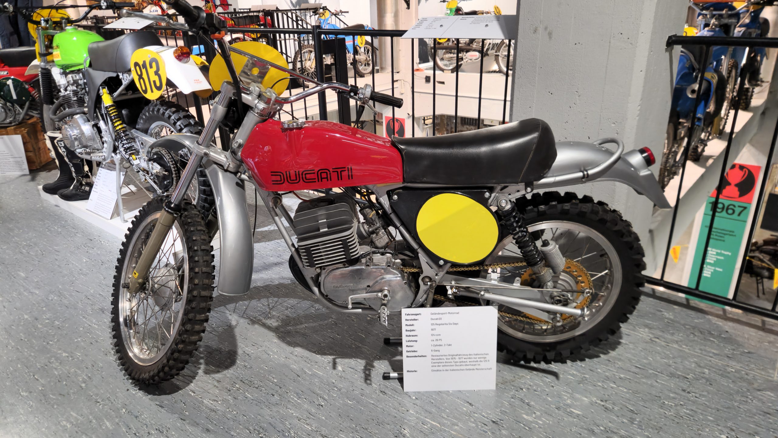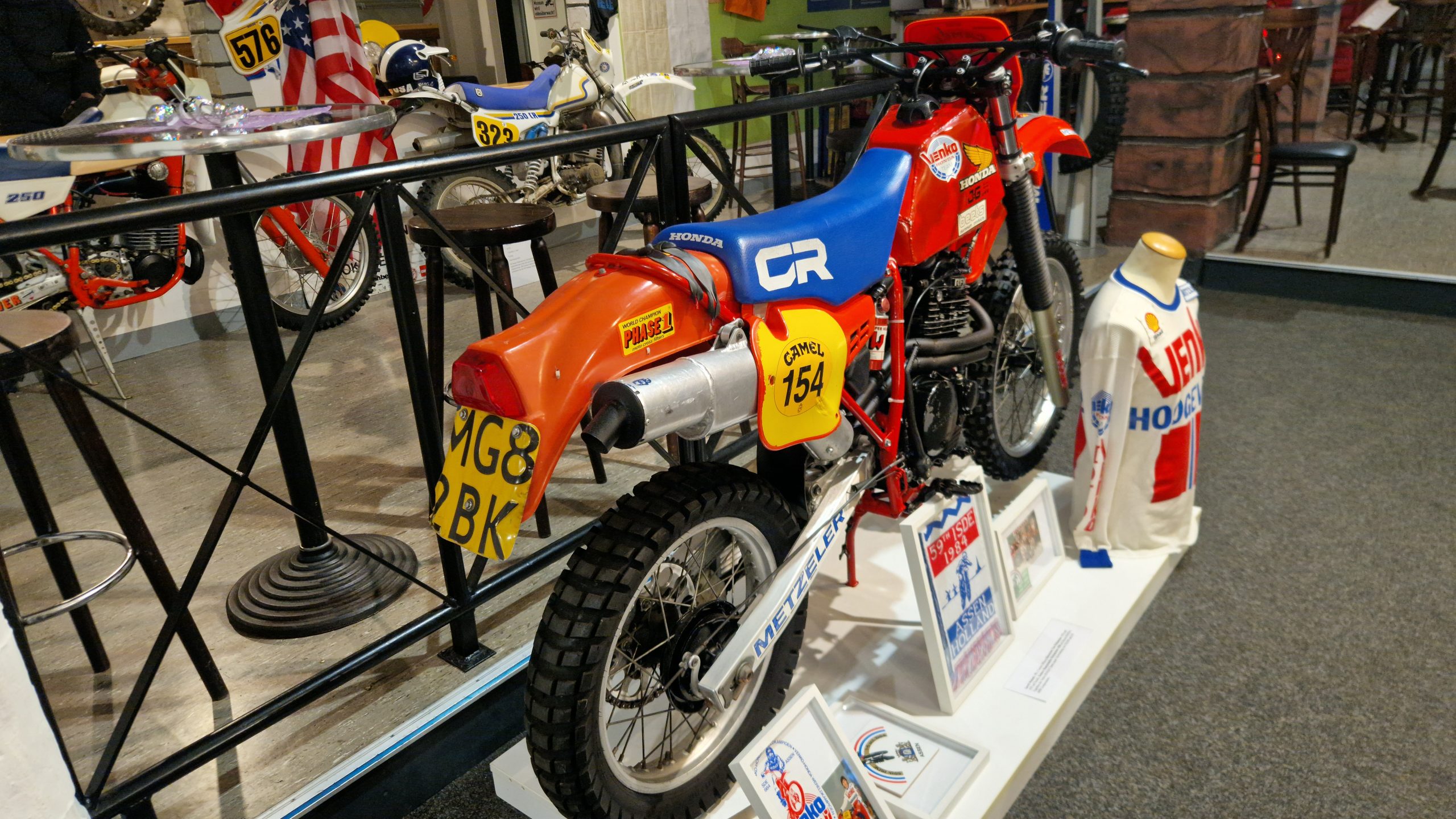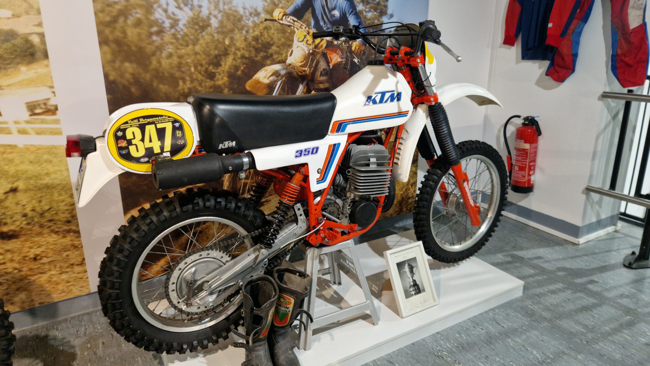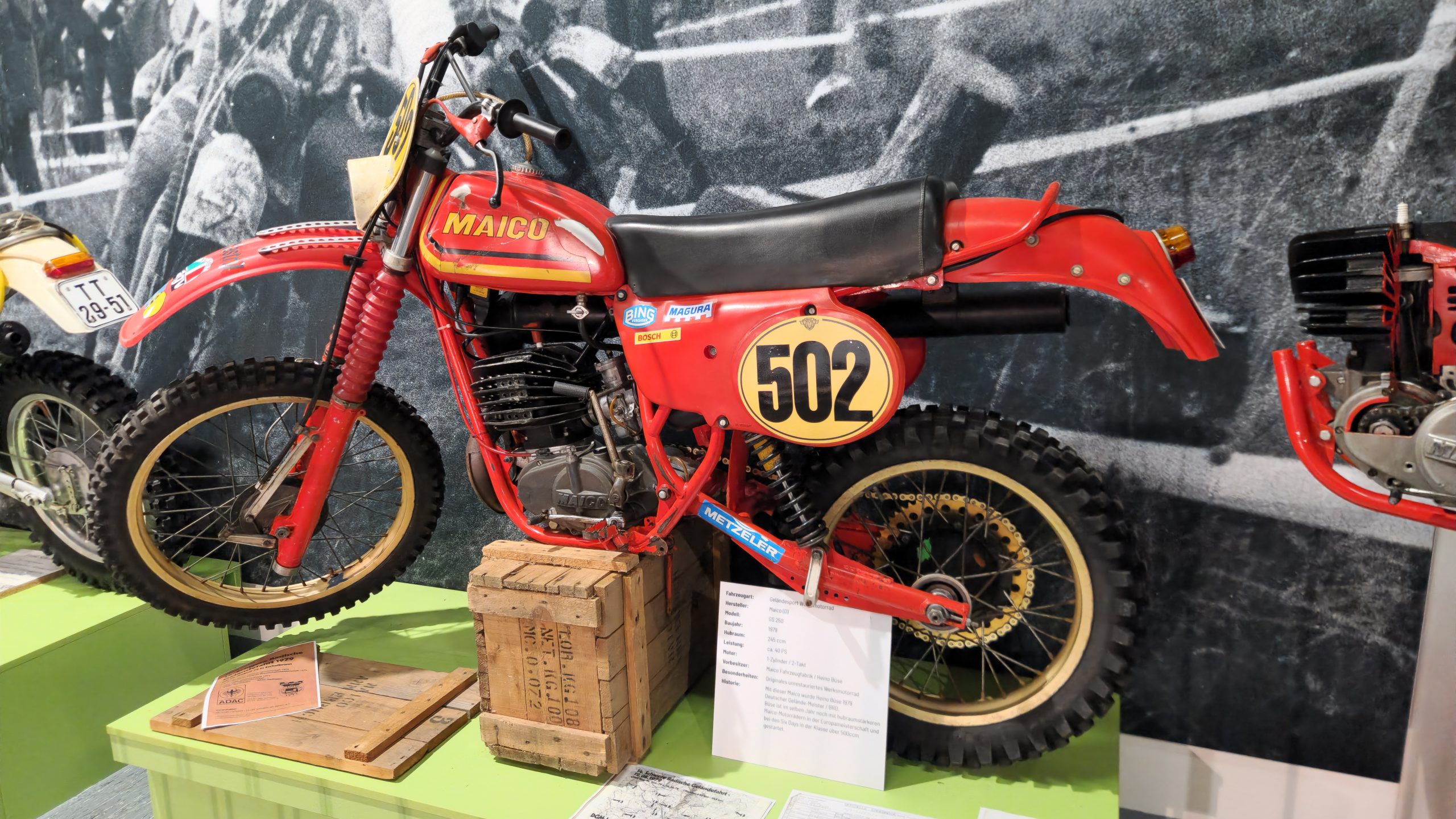 Dazu gibt es eine Menge Hintergrundinformationen und zu den jeweiligen Bikes oft noch die passenden Trikots, Helme, Stiefel sowie Pokale und Medaillen der jeweiligen Fahrer.