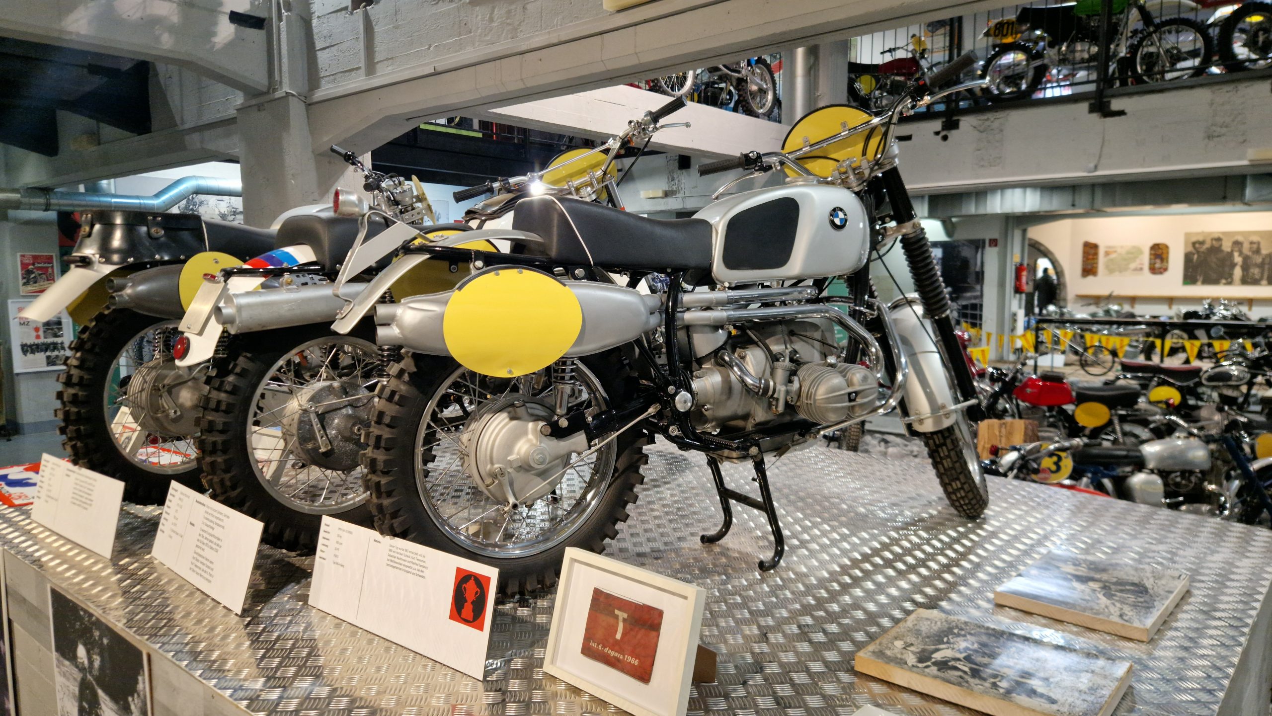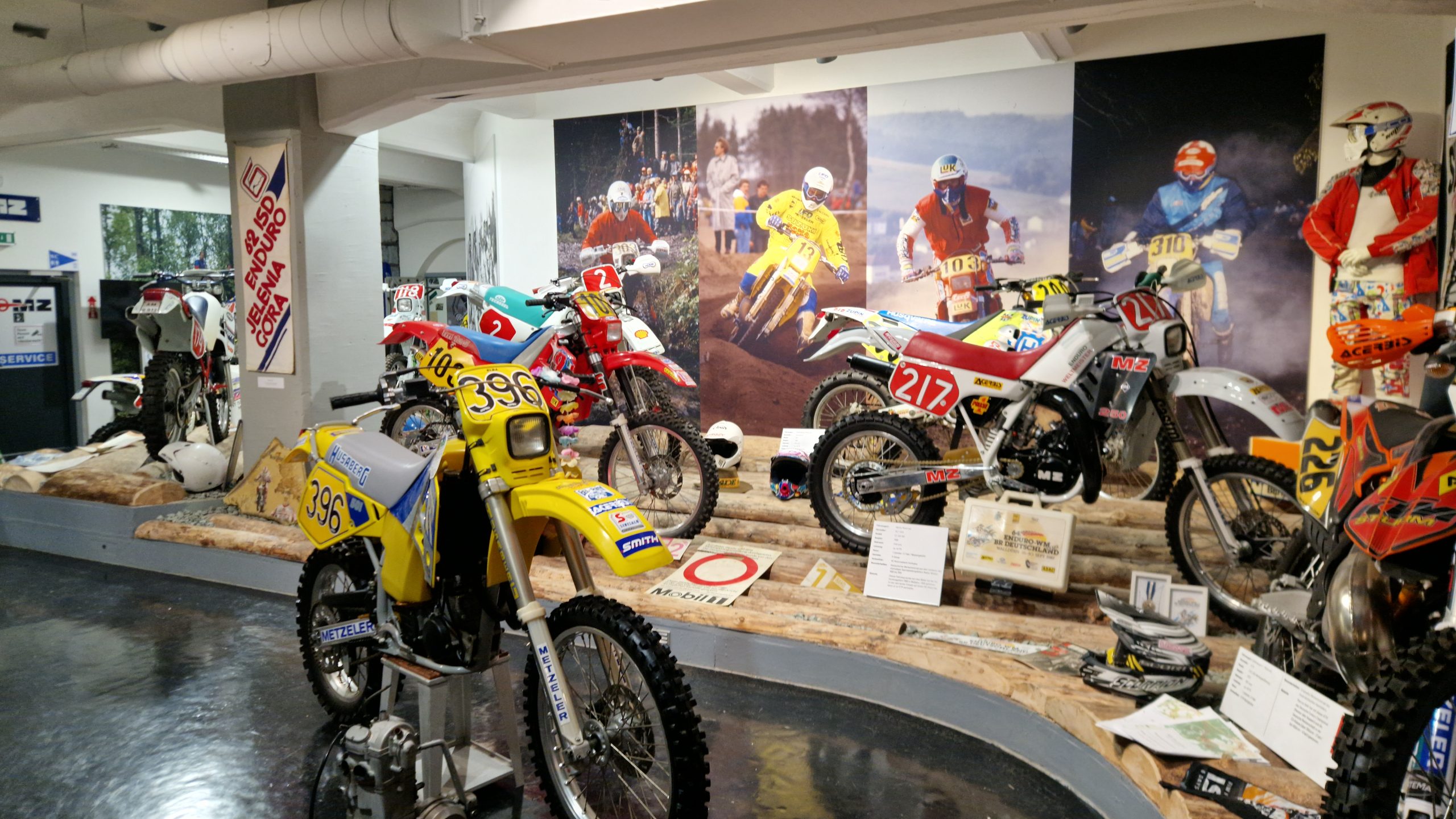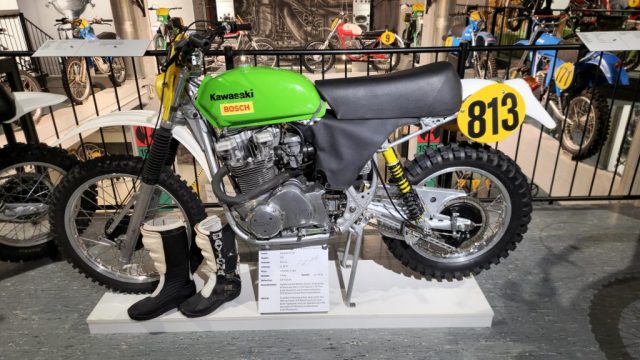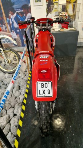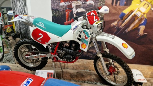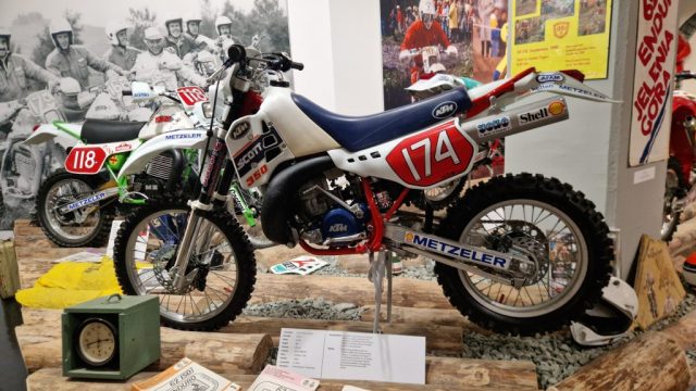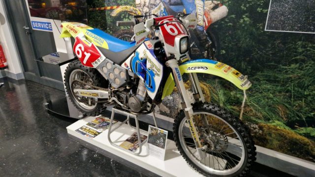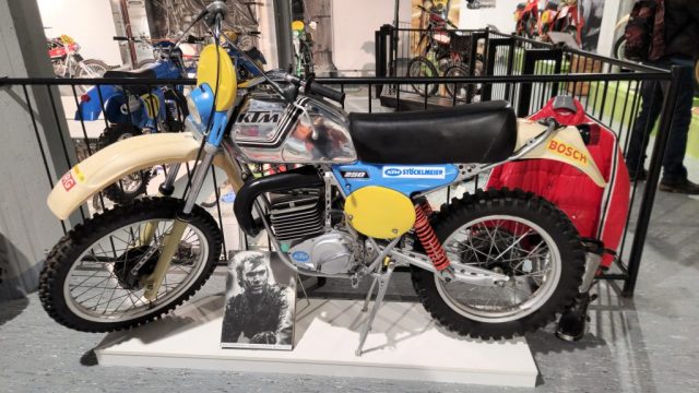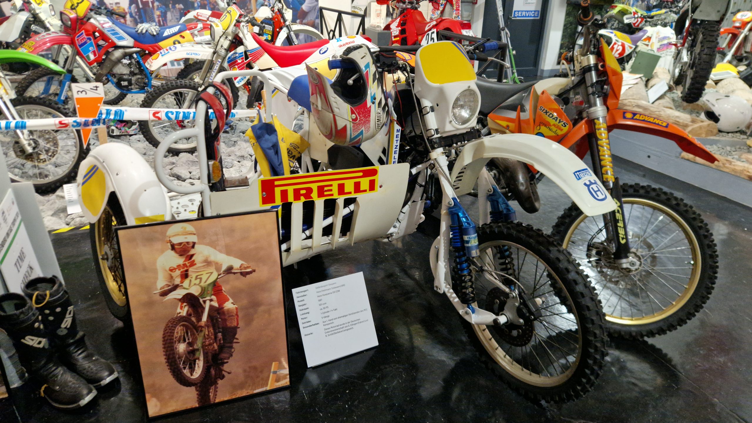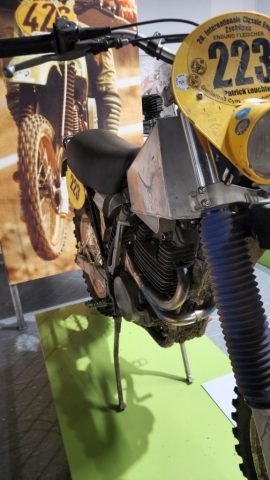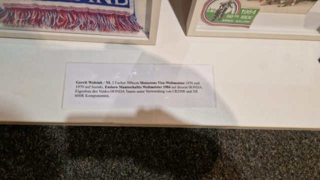 Und das sind wirklich keine heruntergerittenen Kisten von irgendwelchen unbekannten Fahrern, sondern tolle Enduros, Crosser und Rallymaschinen berühmter Fahrer wie z.B. Husqvarna TE610 aus 1995 von Weltmeister Kari Tiainen, die Rally-BMW von Eddy Hau, BMW-Enduro von Herbert Scheck, die Wankel-Hercules von Kurt Fischer, die 780er Kawa-Enduro von Rolf Witthöft, eine DKW von Karl Augustin, eine Maico von Heino Büse, …..