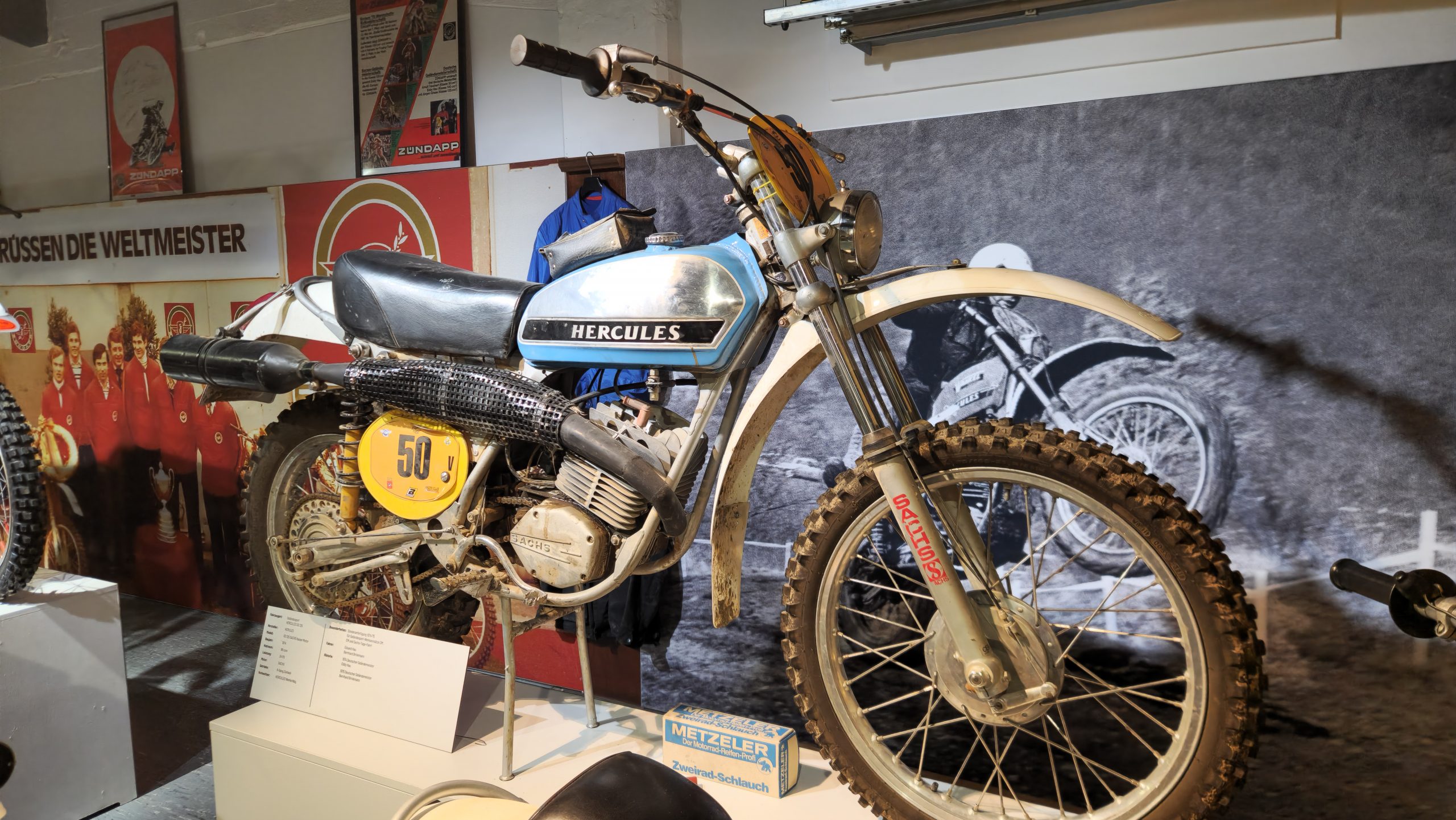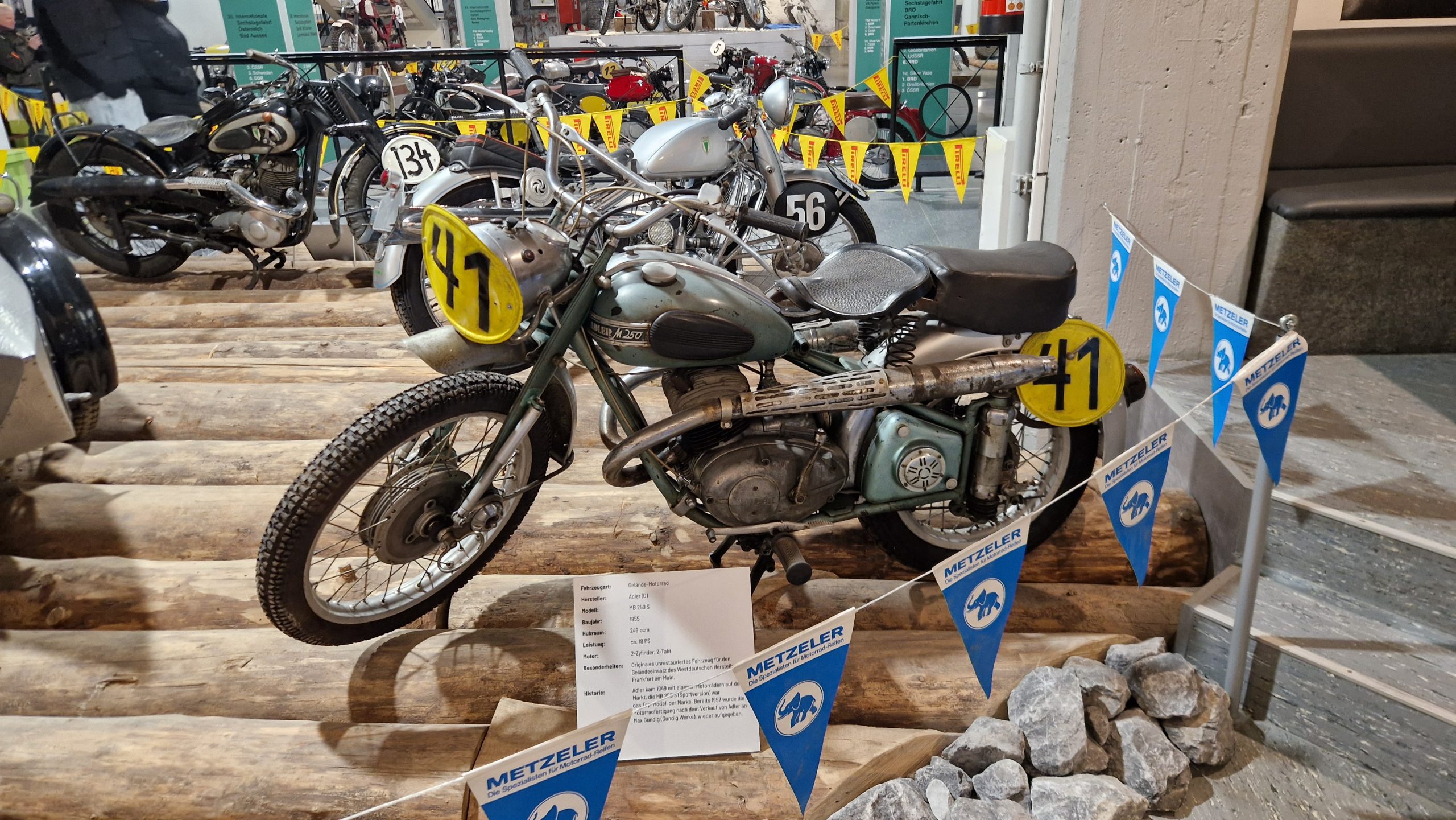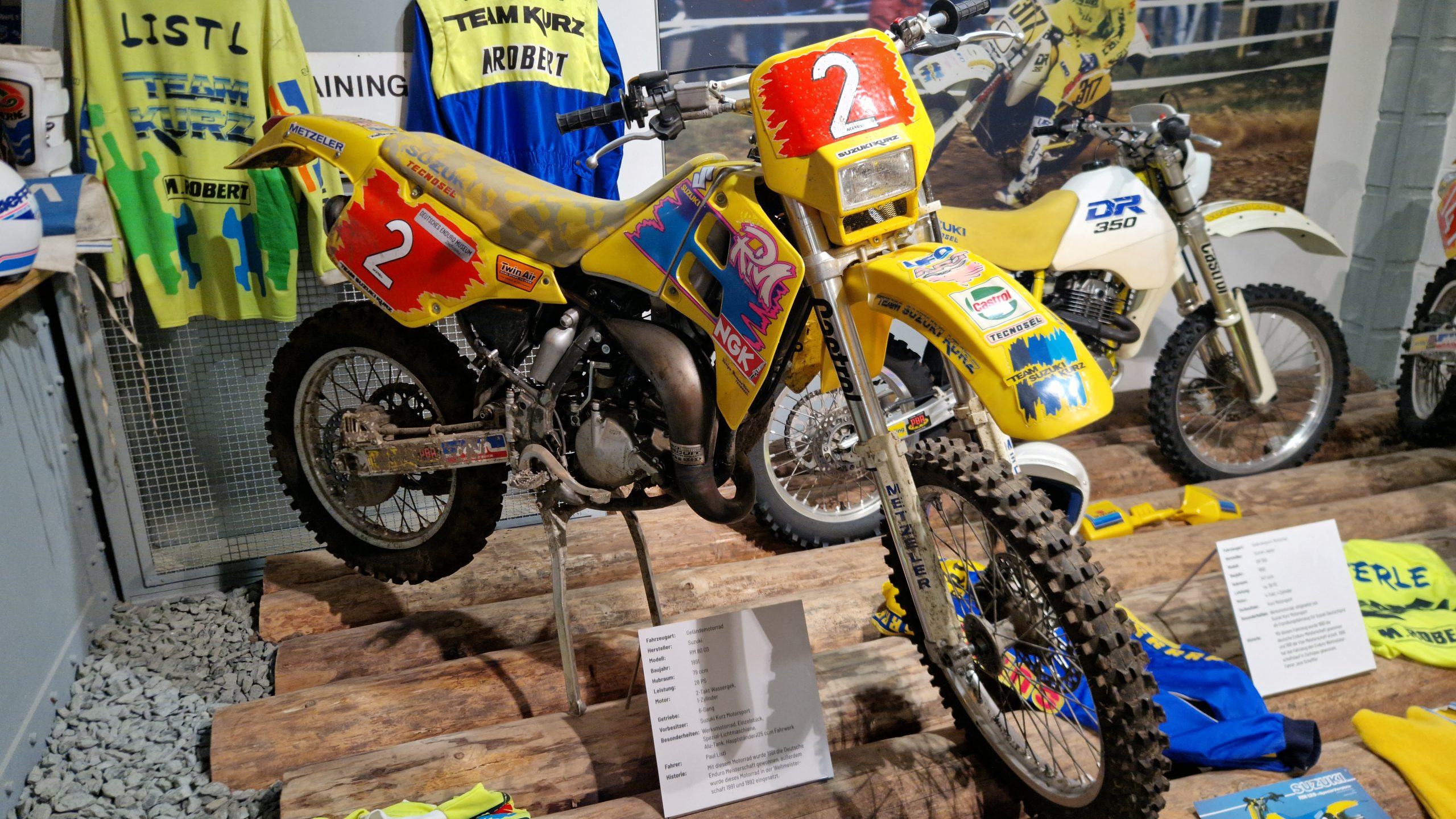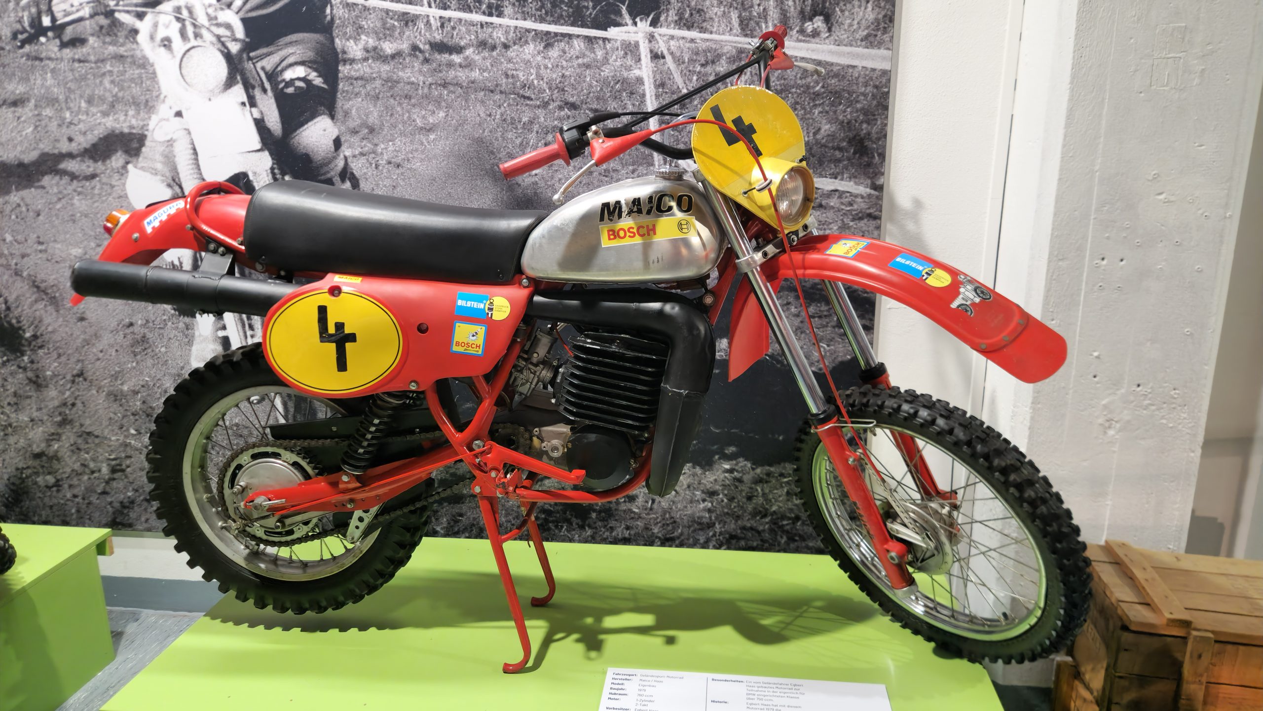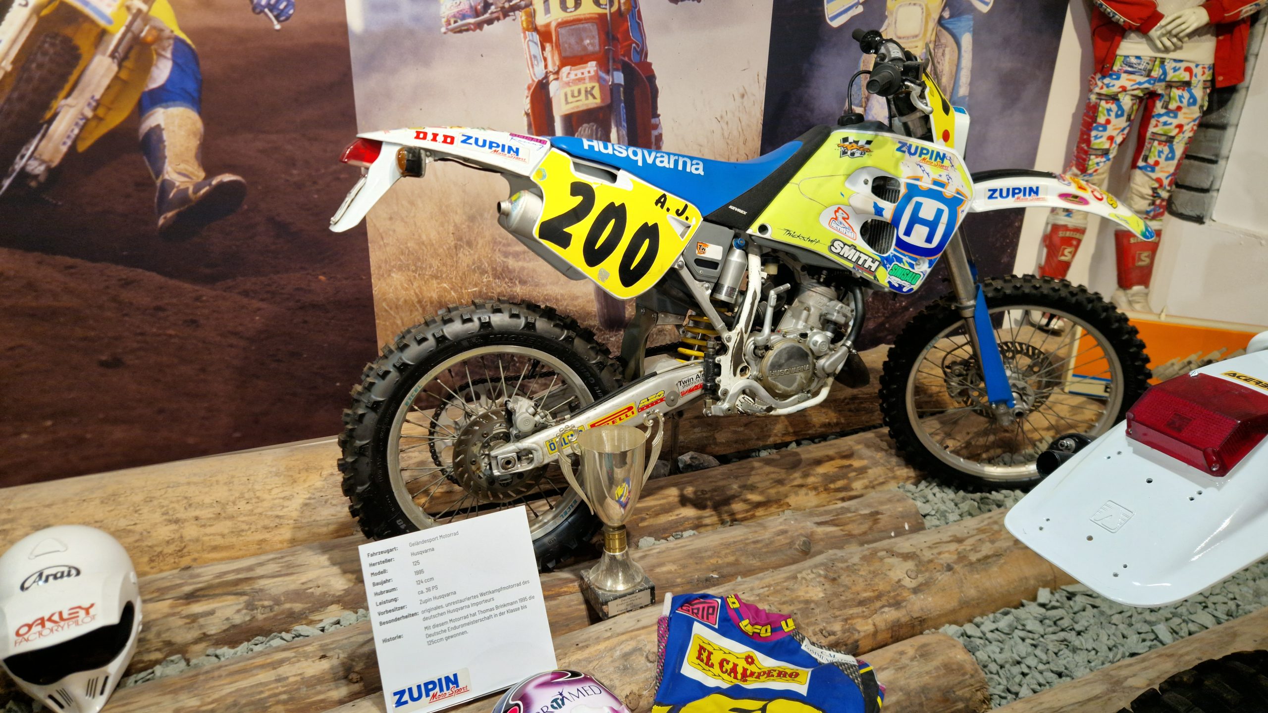 Und das sind wirklich keine heruntergerittenen Kisten von irgendwelchen unbekannten Fahrern, sondern tolle Enduros, Crosser und Rallymaschinen berühmter Fahrer wie z.B. Husqvarna TE610 aus 1995 von Weltmeister Kari Tiainen, die Rally-BMW von Eddy Hau, BMW-Enduro von Herbert Scheck, die Wankel-Hercules von Kurt Fischer, die 780er Kawa-Enduro von Rolf Witthöft, eine DKW von Karl Augustin, eine Maico von Heino Büse, …..