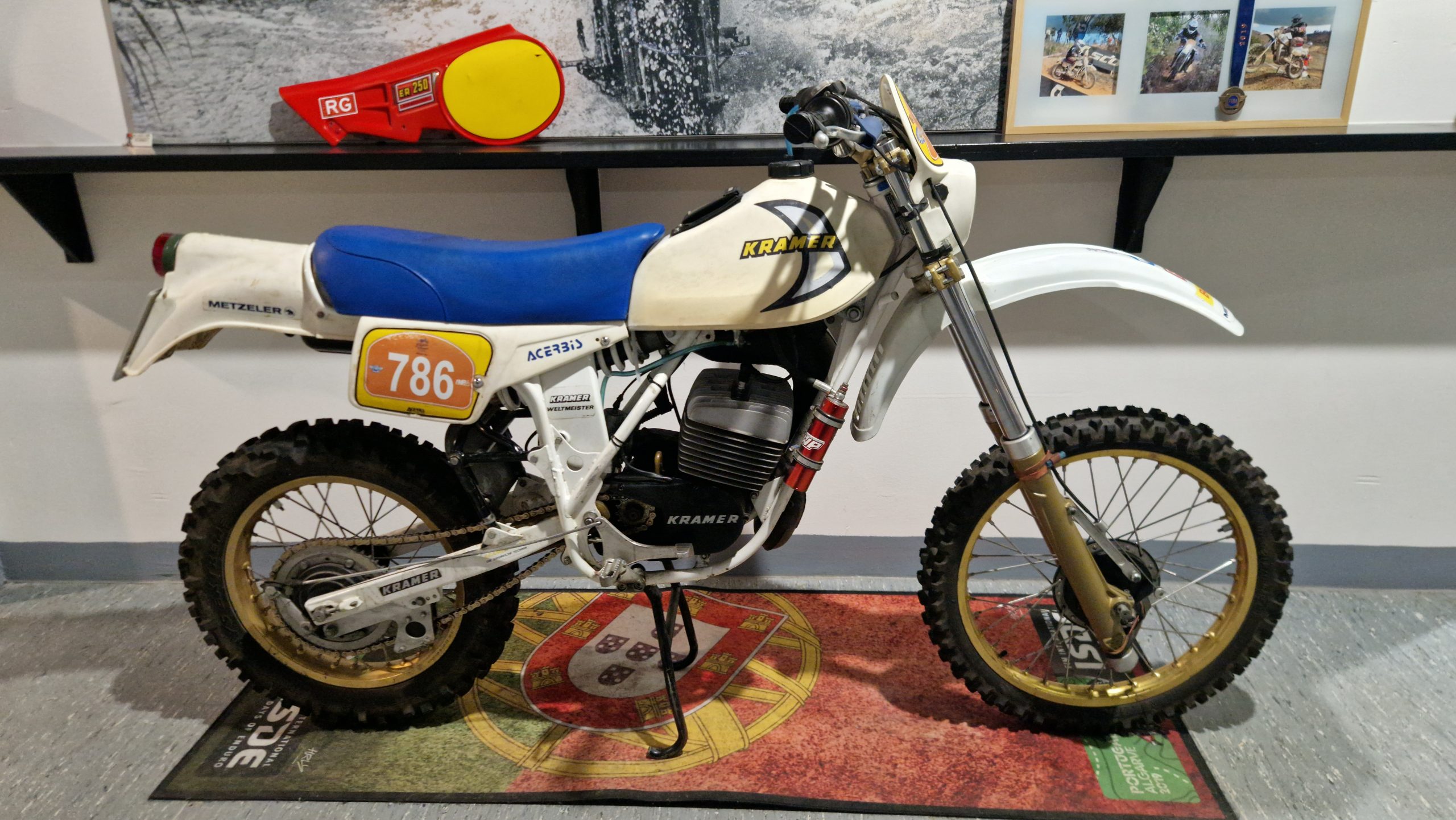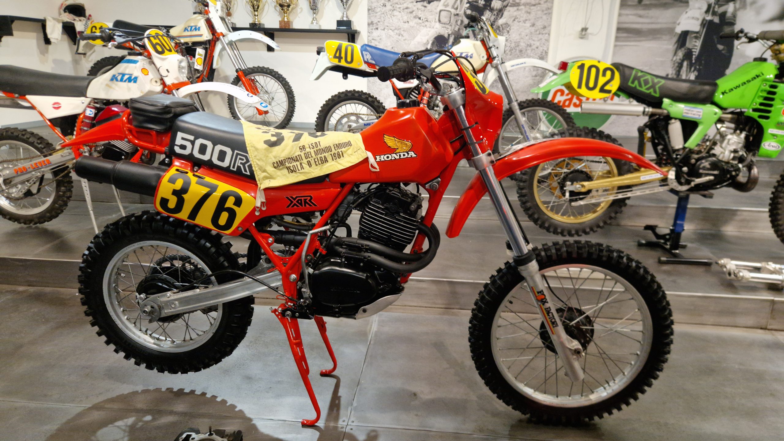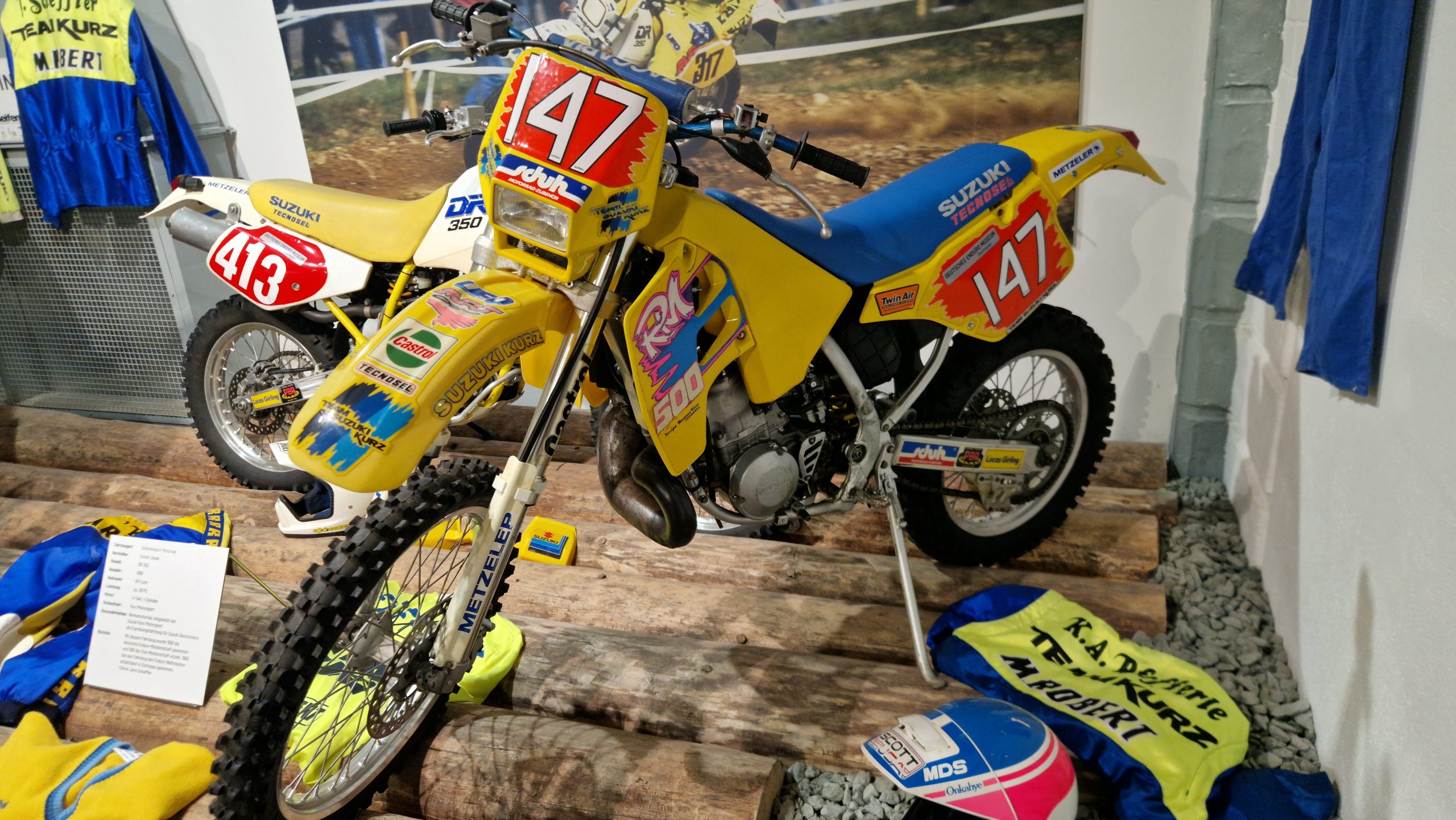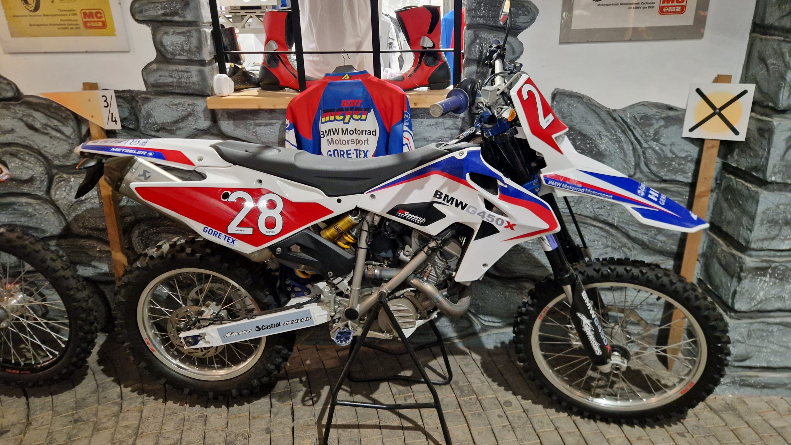 Und das sind wirklich keine heruntergerittenen Kisten von irgendwelchen unbekannten Fahrern, sondern tolle Enduros, Crosser und Rallymaschinen berühmter Fahrer wie z.B. Husqvarna TE610 aus 1995 von Weltmeister Kari Tiainen, die Rally-BMW von Eddy Hau, BMW-Enduro von Herbert Scheck, die Wankel-Hercules von Kurt Fischer, die 780er Kawa-Enduro von Rolf Witthöft, eine DKW von Karl Augustin, eine Maico von Heino Büse, …..