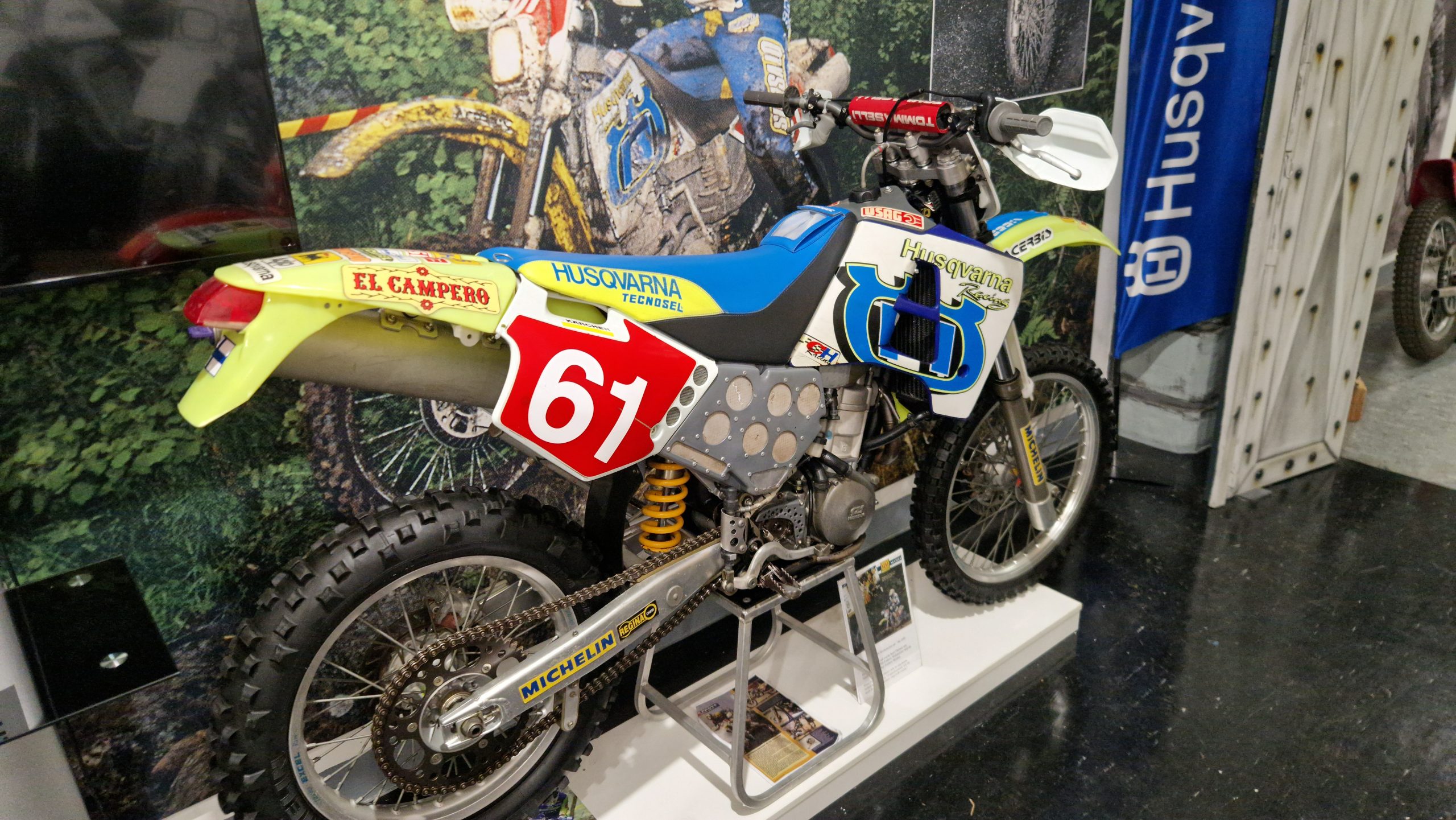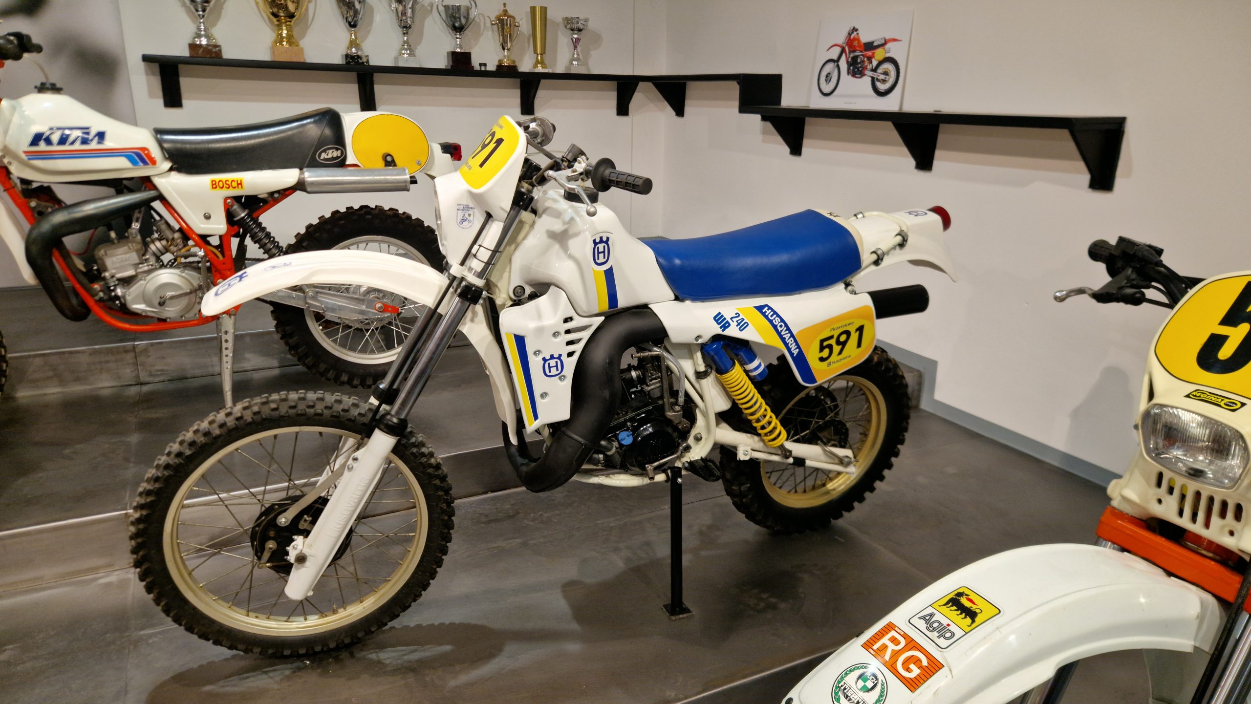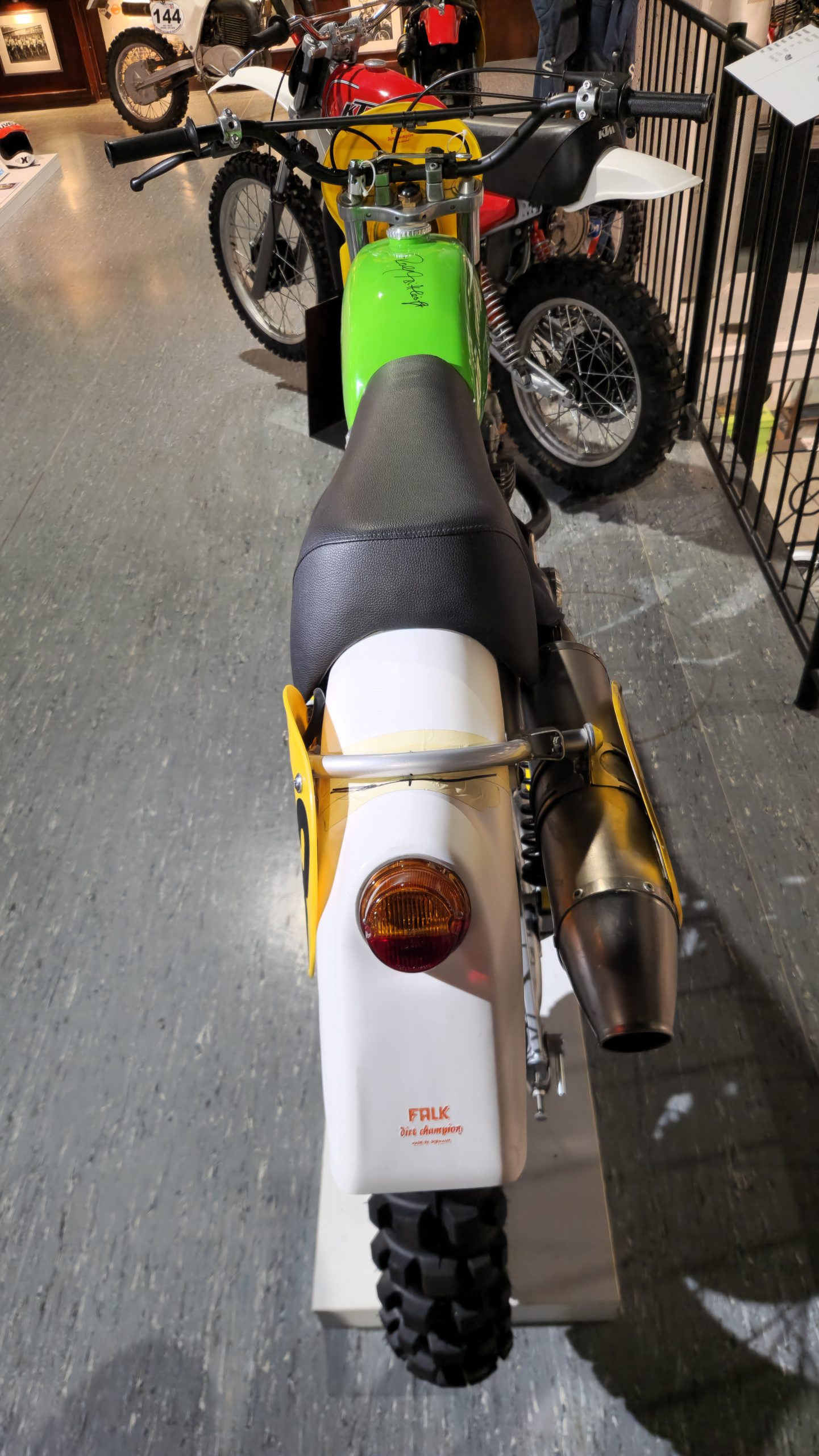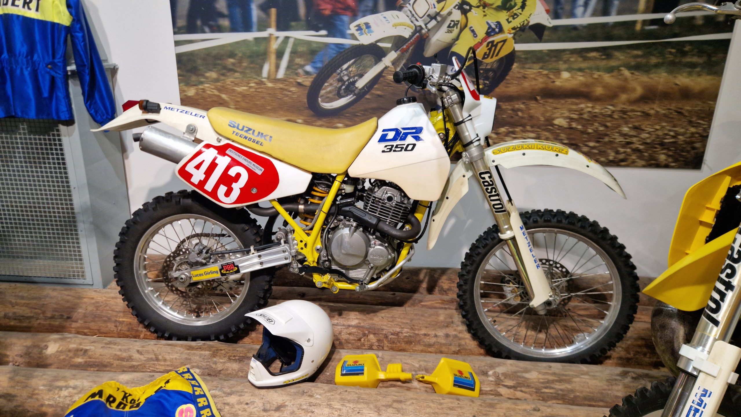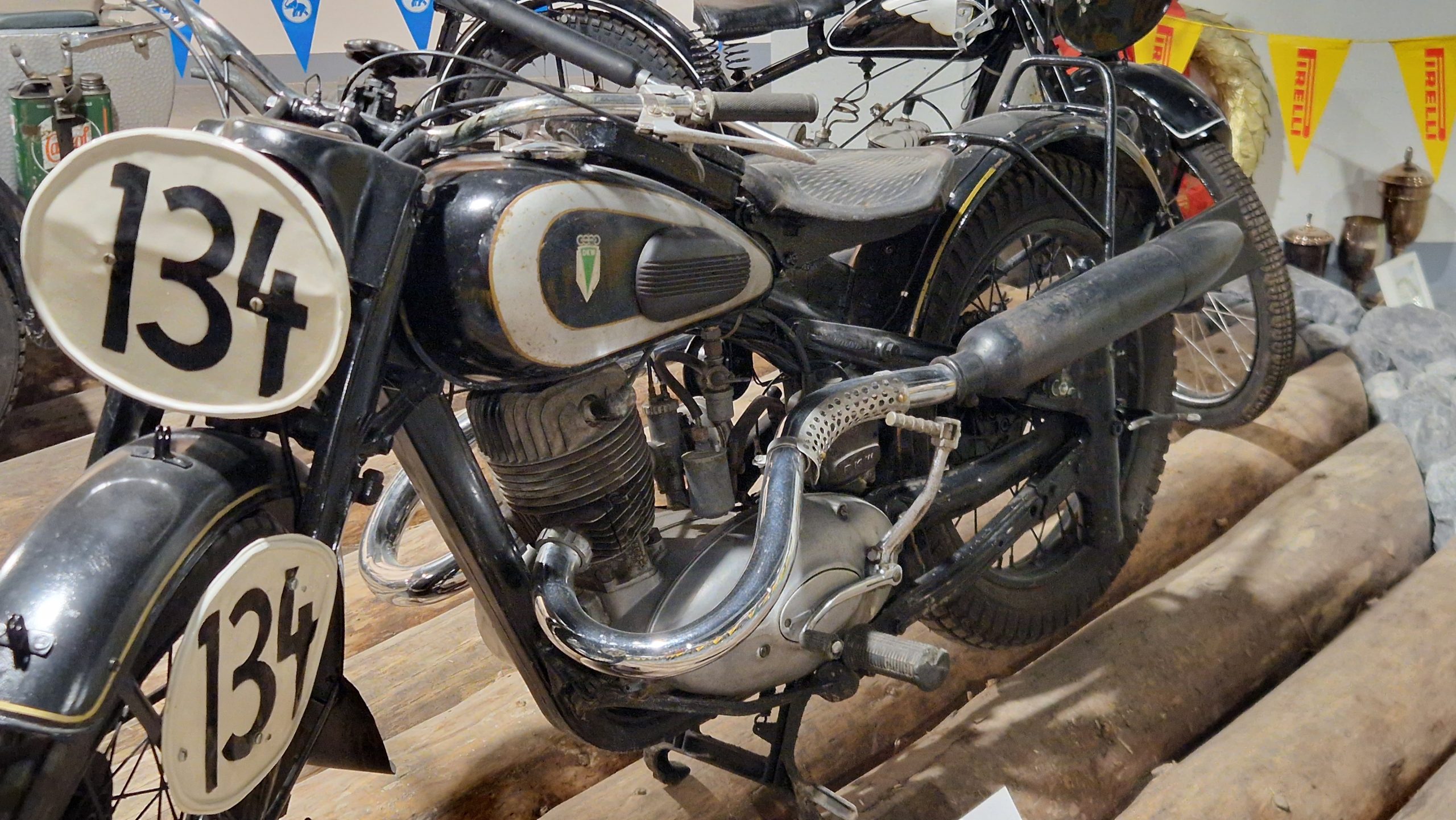 Und das sind wirklich keine heruntergerittenen Kisten von irgendwelchen unbekannten Fahrern, sondern tolle Enduros, Crosser und Rallymaschinen berühmter Fahrer wie z.B. Husqvarna TE610 aus 1995 von Weltmeister Kari Tiainen, die Rally-BMW von Eddy Hau, BMW-Enduro von Herbert Scheck, die Wankel-Hercules von Kurt Fischer, die 780er Kawa-Enduro von Rolf Witthöft, eine DKW von Karl Augustin, eine Maico von Heino Büse, …..