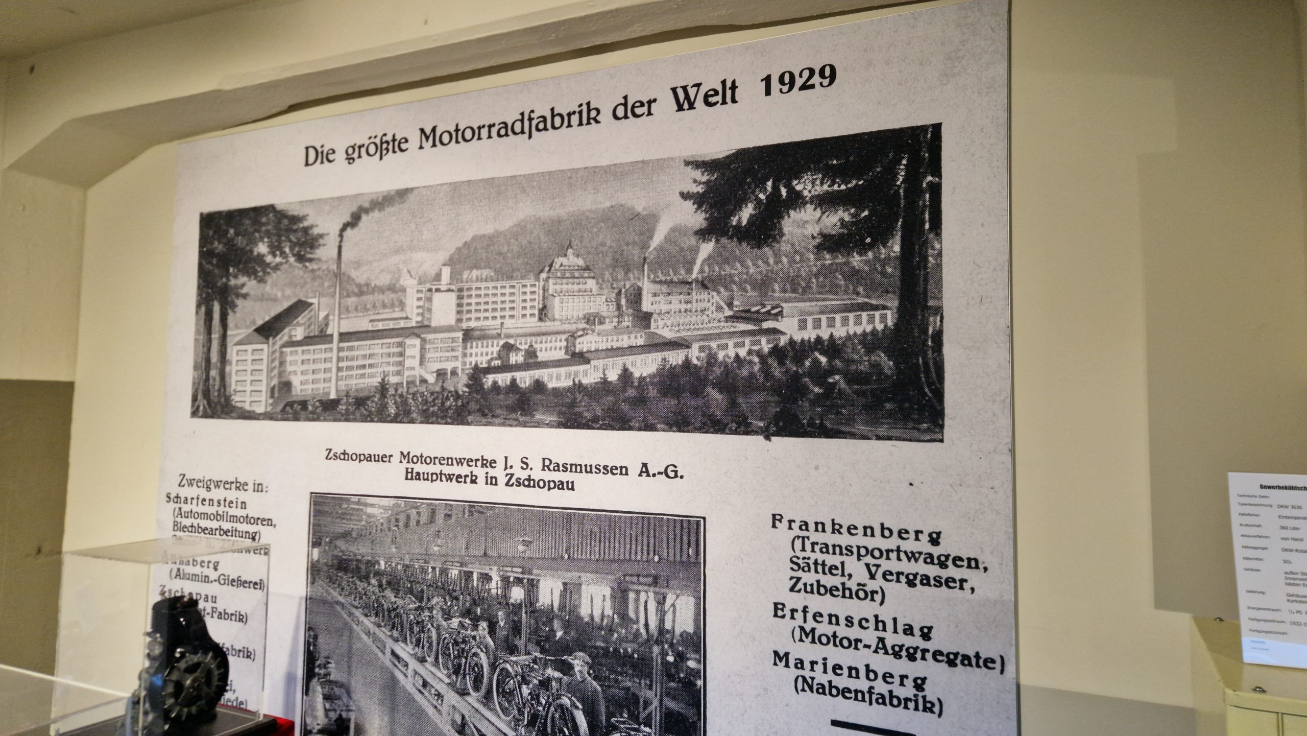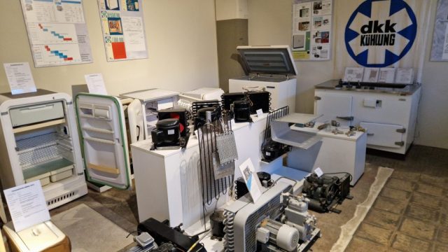 Zusätzlich wurde in einer Nebenhalle noch die Geschichte von DKW und MZ in Zschopau beleuchtet zusammen mit einigen Kühlgeräten, die hier ebenfalls zu DDR-Zeiten unter den Namen DKW und DKK produziert wurden.