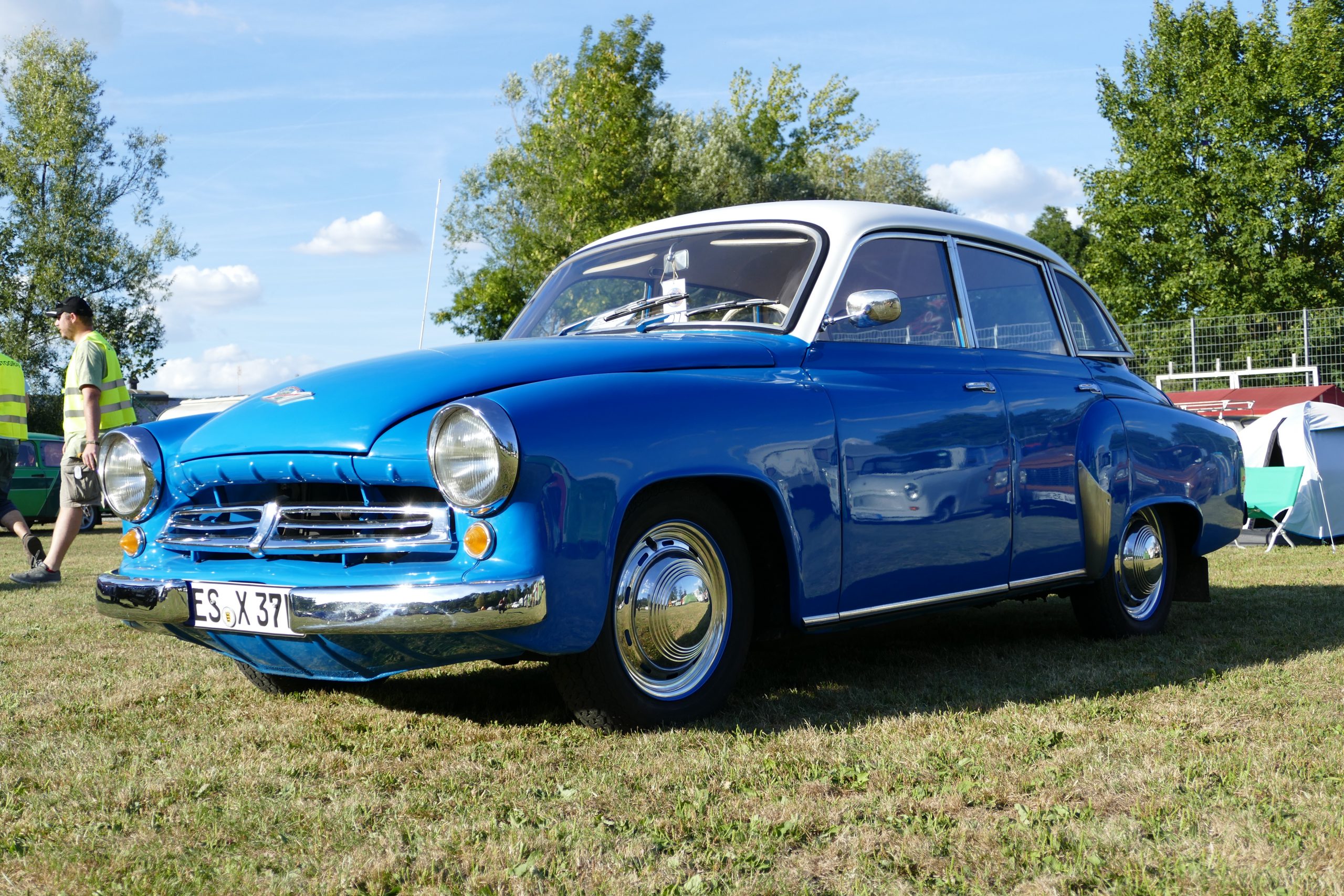 Es gab schon einige schöne Schmuckstücke und nette Leute, wenn ich auch manchmal den Eindruck hatte, es wurde von manchen mehr die „gute alte DDR-Zeit“ als die schönen Fahrzeuge gefeiert. Das kann ich als Wessi wohl einfach nicht so gut nachvollziehen!